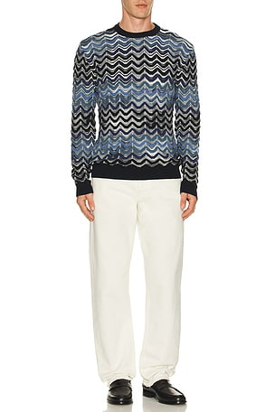 Crochet Chest Stripe Crewneck Sweater
